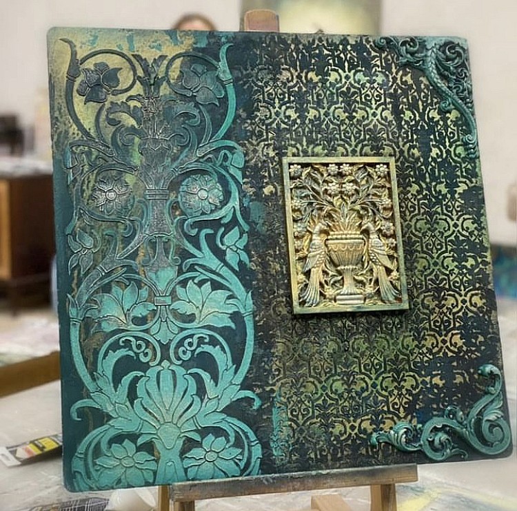 В прорези этого универсального инструмента удобно наносить краску различными способами: спонжем, круглой кистью или аэрографом. Трафарет легко вдавливается в глину, а также подходит для декоративной штукатурки. Для нанесения акриловых фактурных гелей наилучшим способом является использование шпателя, который также удобно использовать для удаления излишков краски без повреждения трафарета.