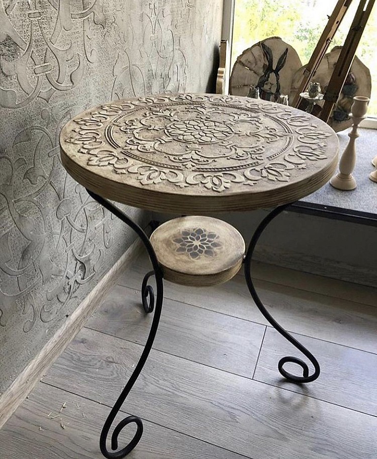 Если хочешь сразу шикарный эффект, надо купить этот трафарет, что я и сделала! Декорировала столик, получилось идеально! Трафарет достаточно плотный, очень хорошо лежит на поверхности, я даже ничем не фиксировала. А потом я использовала этот трафарет для декорирования тумбочки. Получилось тоже прекрасно. Теперь мой любимый трафарет! И меня совершенно покоряете упаковка - не просто в конверте или пакете, а специальная папка из оргалита для хранения.